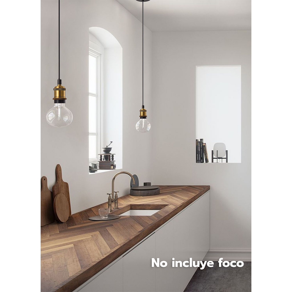 Colgante con salida para un foco, Material: Bronce antiguo con cable de acero incluído, Acabado: Bronce, Voltaje: 90-130V, Base: E26, Watts: 1 Luz * Máx. 40W, Foco no incluido.