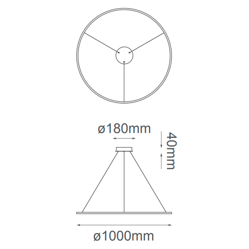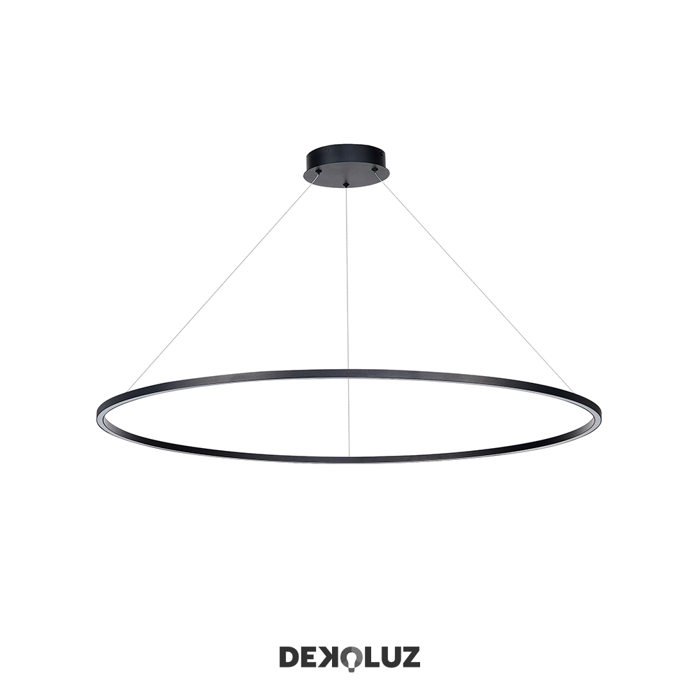 Pendant con led integrado, Material: Aluminio y silicon, Acabado: BK – Negro, Watts: 60W, Temperatura de color: CCT, 3000K / 4000K / 6000K, Flujo luminoso: 4800lm, Voltaje: 90-130V, Medidas: ø1000mm, Altura ajustable: cable de 3m.