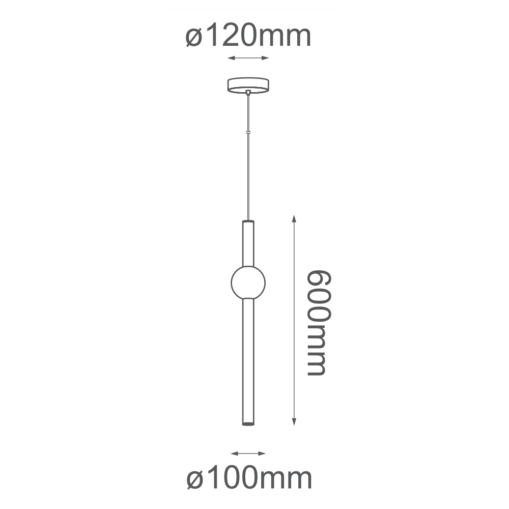 Pendant con LED integrado, Material: Metal y cristal, Watts: 12W, Temperatura de color: 3000K, Flujo luminoso: 960lm, Voltaje: 90-130V, Medidas: D10*H60cm, Cable de 3 metros.