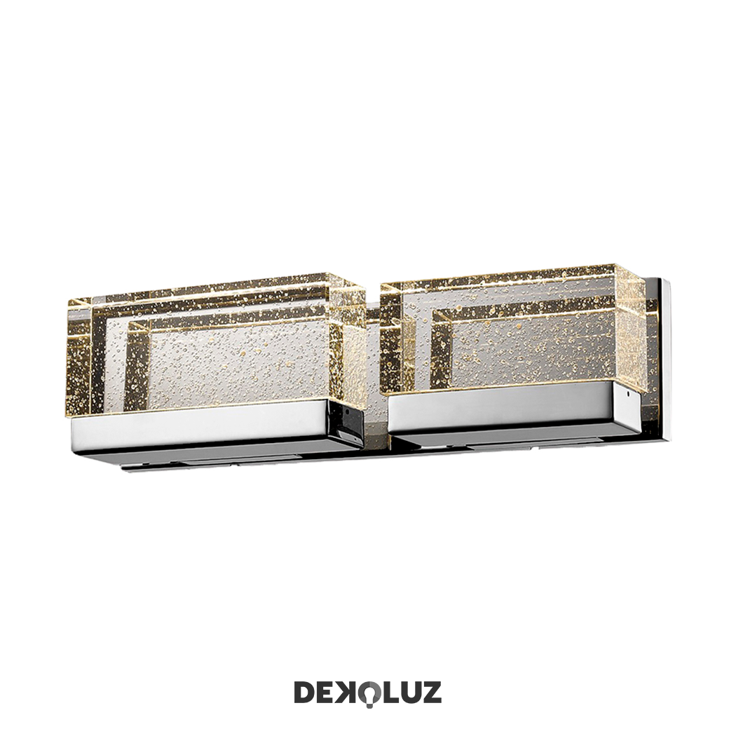 Lámpara de pared con LED integrado, Material: Metal y Cristal, Acabado: CH Cromo, Voltaje: 90-130V, Watts: 15W, Flujo luminoso: 1200lm, Temperatura de color: WWW 3000K (Luz Cálida), Medidas: L460*W80*H125mm.